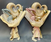 ベージュのオープンハートに、音符バルーンはくすみピンクとくすみブルーでお選びいただけます。